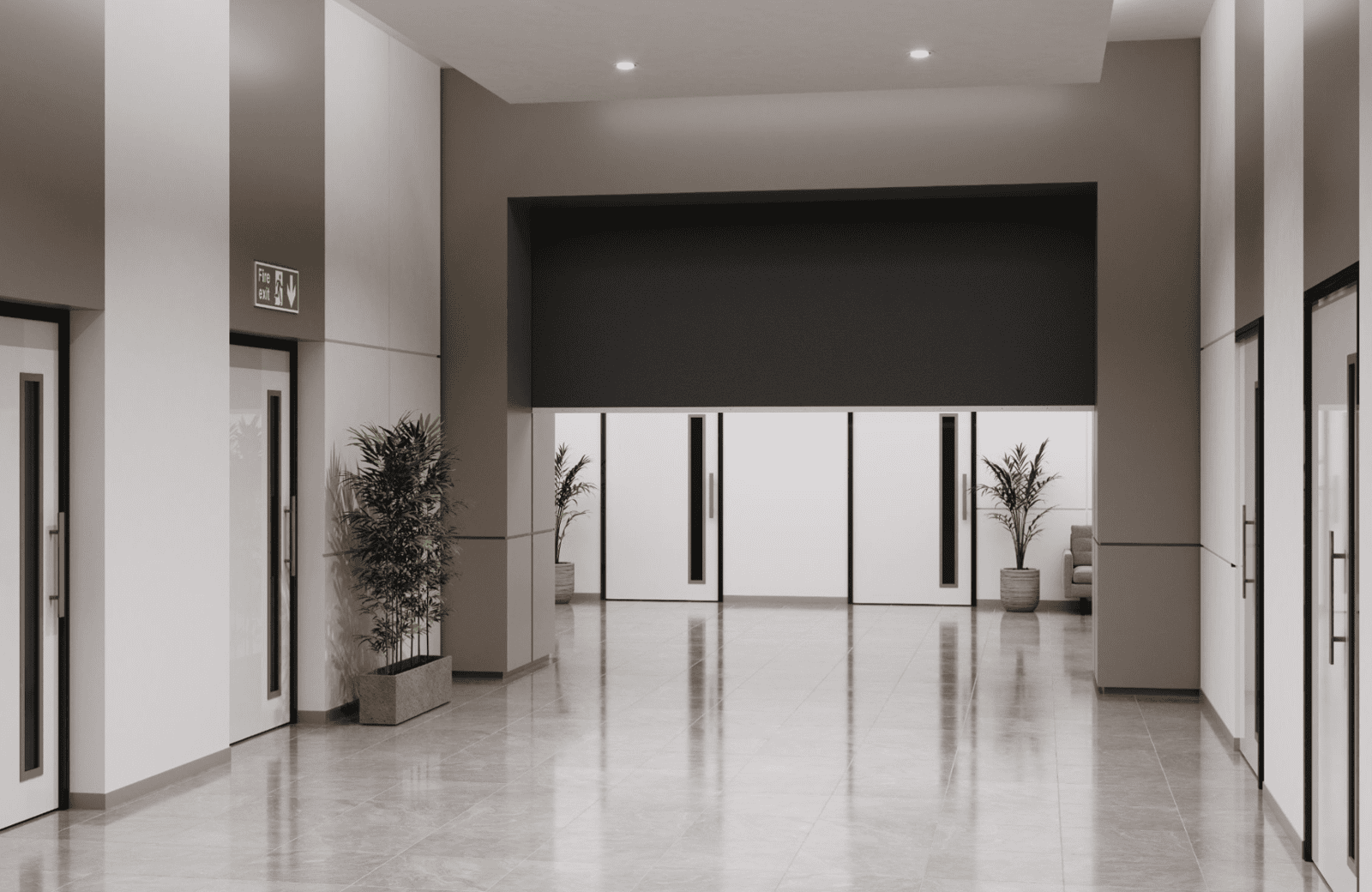 Designed to deploy seamlessly from a concealed head box, these state-of-the-art fire protection systems automatically descend during a fire.